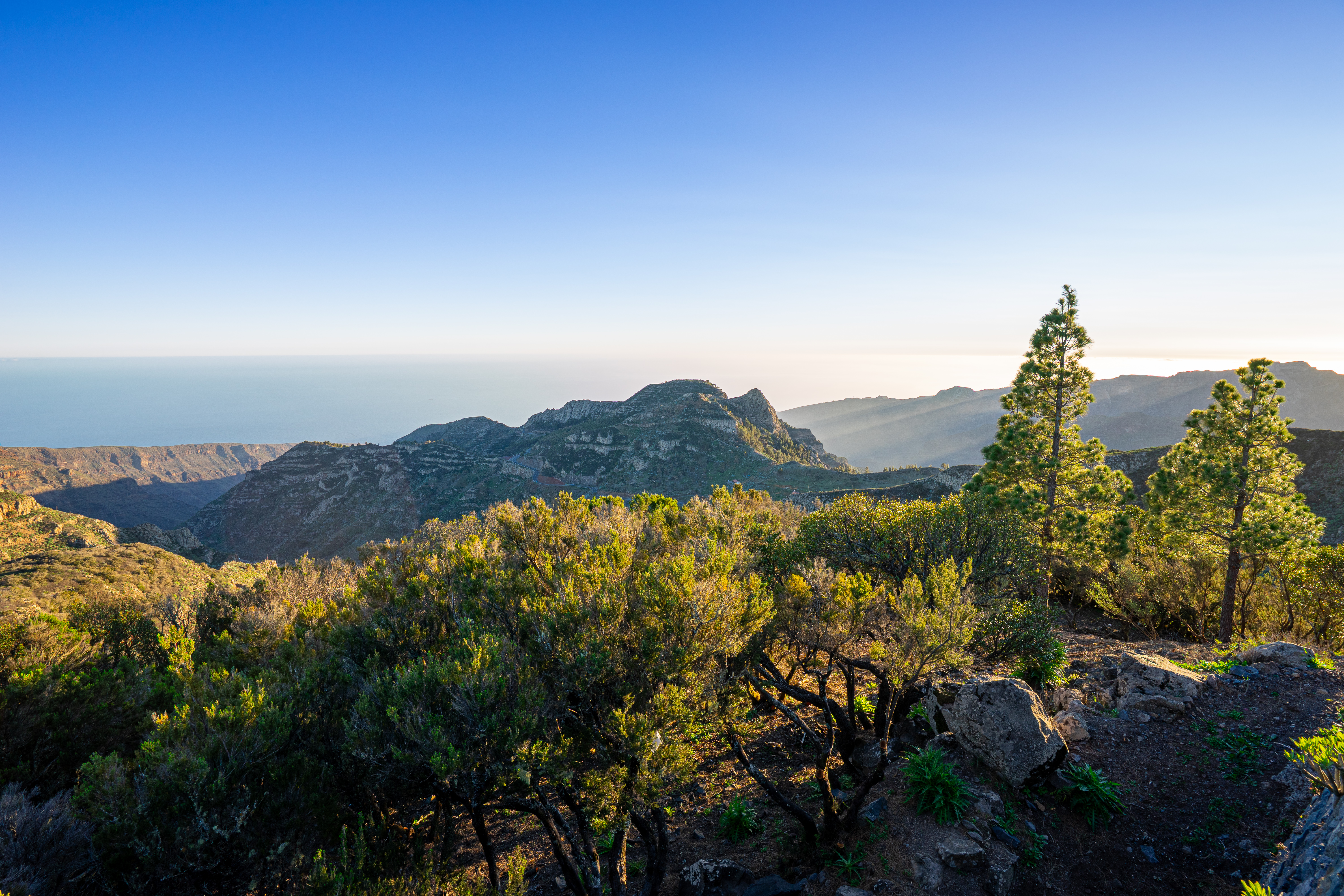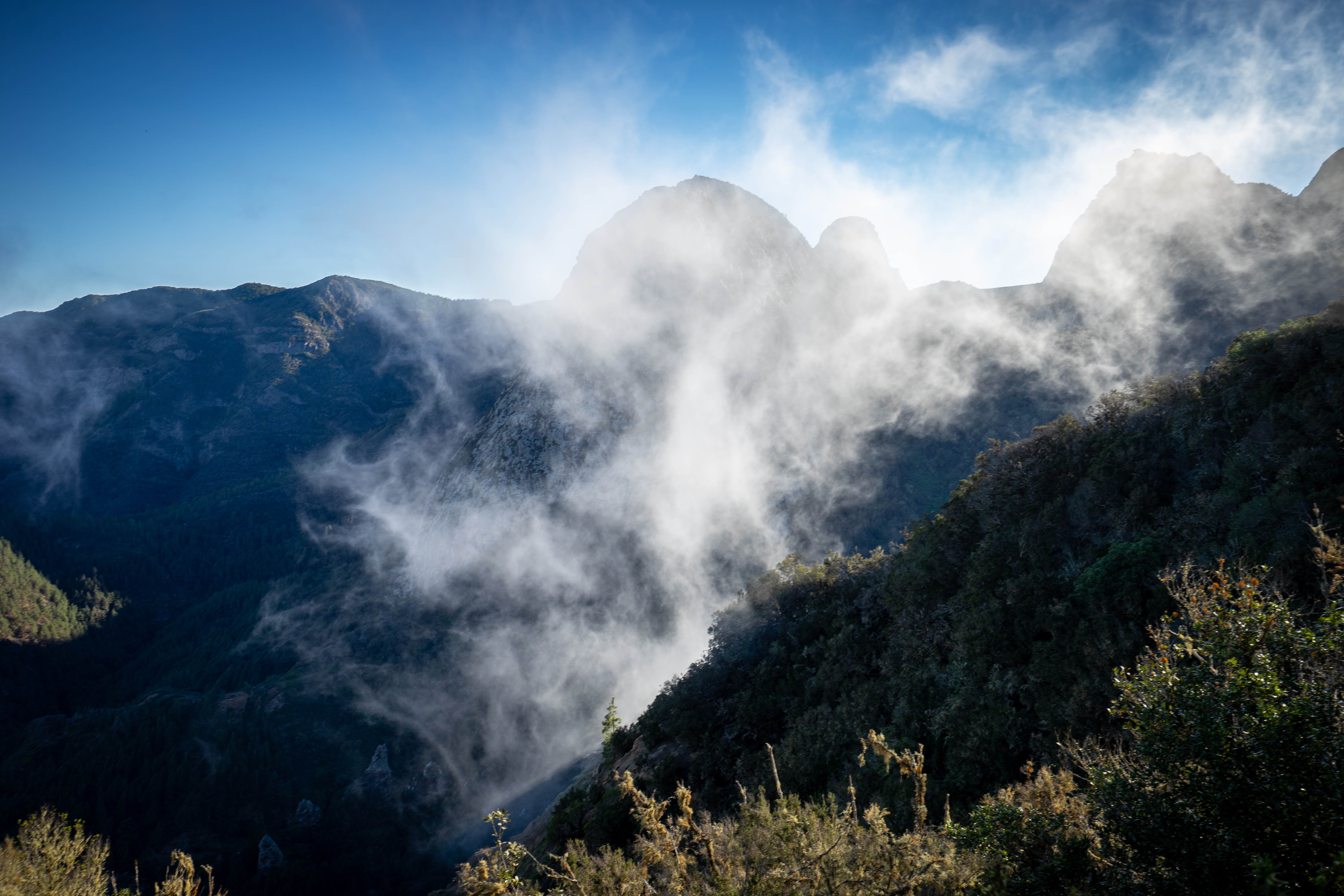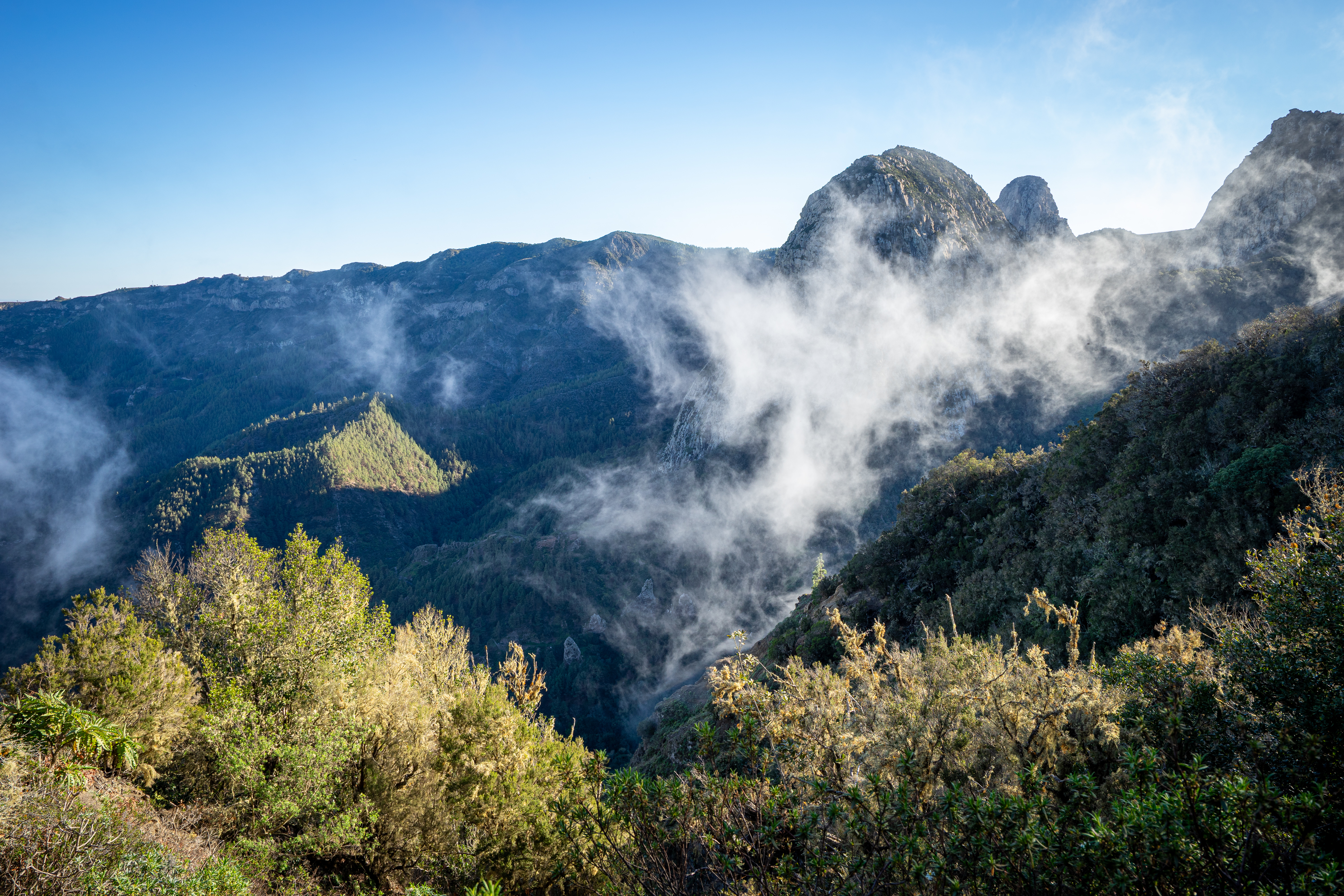 La Gomera, die kleine Schwester Teneriffas, fasziniert Fotografen mit ihrer ursprünglichen Schönheit und den dramatischen Landschaften. Schon bei der Ankunft eröffnet sich eine Welt voller Kontraste: Steile Küsten, tief eingeschnittene Schluchten und üppige, grüne Täler prägen das Bild. Besonders im Nationalpark Garajonay, einem UNESCO-Weltnaturerbe, erwartet Sie ein mystischer Lorbeerwald, in dessen Nebelschwaden und moosbedeckten Ästen sich zauberhafte Lichtstimmungen einfangen lassen. Die verschlungenen Wanderwege bieten immer wieder überraschende Perspektiven auf die uralten Baumriesen und die einzigartige Flora der Insel.