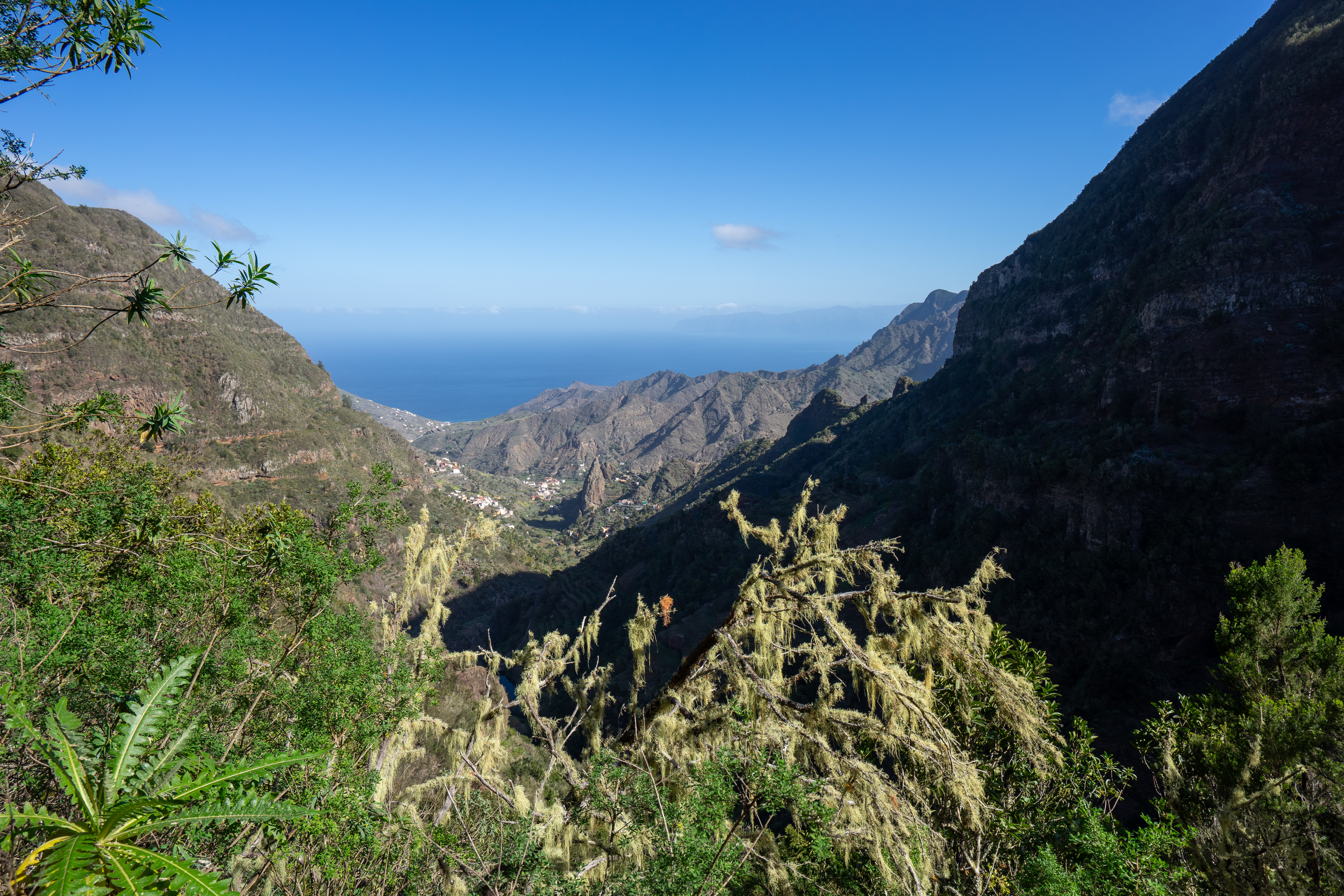 Ein weiteres Highlight sind die malerischen Dörfer wie Agulo und Hermigua, deren terrassenförmig angelegte Felder und traditionellen Steinhäuser authentische Einblicke ins Inselleben ermöglichen. Die bunten Fassaden, liebevoll gepflegten Gärten und kleinen Plätze laden zum Festhalten ruhiger Momente ein. An der Küste beeindrucken die schwarzen Lavastrände von Valle Gran Rey und Playa de Santiago, wo Sonnenuntergänge in leuchtenden Farben das Meer in Szene setzen und Fischerboote für maritime Motive sorgen. Für spektakuläre Panoramen empfiehlt sich ein Besuch der Miradores – Aussichtspunkte wie Alto de Garajonay oder Mirador de Abrante eröffnen grandiose Ausblicke über die Insel und bis nach Teneriffa.